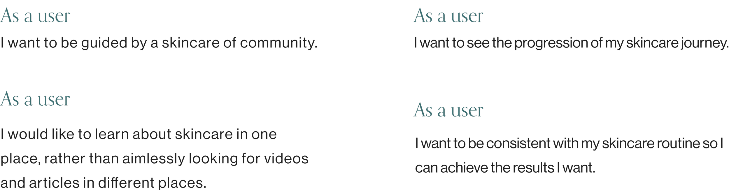 From this research, I’ve discovered that consumers often feel overwhelmed by their skincare journeys. Users need the information to achieve consistent results, make progress in their journeys, and make things less confusing.